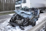 Po zderzeniu pojazdu osobowego z ciężarowym volvo trzy osoby przewieziono do szpitala.