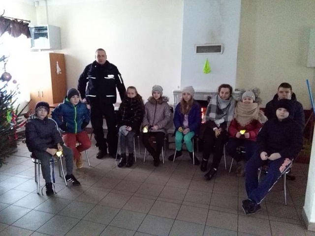 Podczas spotkania dzielnicowy rozmawiał z dziećmi na temat bezpiecznego spędzania wolnego czasu w trakcie ferii. Przestrzegał przed zabawami na zamarzniętych zbiornikach wodnych, przypominając, że najbezpieczniejszym miejscem np. do jazdy na łyżwach, jest zorganizowane lodowisko w Ostrowi Mazowieckiej. Funkcjonariusz omówił również zasady bezpieczeństwa w ruchu drogowym pieszych, apelował o używanie elementów odblaskowych po zmierzchu poza obszarem zabudowanym.