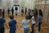 Przy akompaniamencie akordeonisty Waldemara Jaszczaka uczniowie poznali krok podstawowy oberka, kujawiaka i chodzonego. Uczniowie uczyli się przy zabawie "Drepce konik drepce" i "Zajączek". Po krótkim instruktażu, wszyscy uczniowie zatańczyli chodzonego, który uważany jest za pierwowzór poloneza.