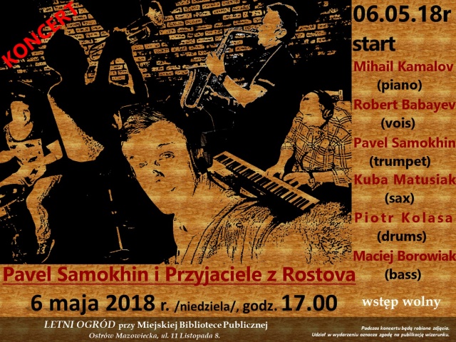 6 maja 2018 r. (niedziela) o godz. 17.00 Miejska Biblioteka Publiczna w Ostrowi Mazowieckiej zaprasza na koncert "Standardy jazzowe".