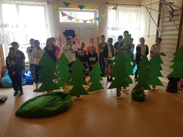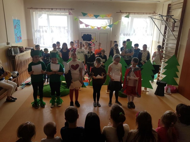 21.04.2018 r. uczniowie klas II-III pod kierunkiem wychowawczyni przedstawili wspaniałe widowisko o treści ekologicznej pt.: "Co król jada na śniadanie", zaśpiewali piosenki oraz rozwiązywali zagadki przyrodnicze.