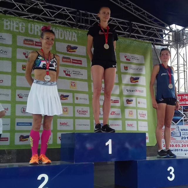 Ewa Jagielska trenująca w LKS Ostrowianka, dobiegła do mety z drugim czasem (16:35), dzięki czemu zdobyła srebrny medal.