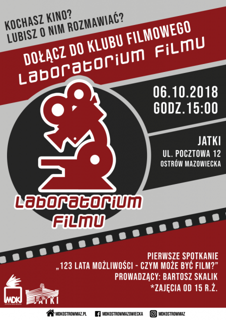 Pierwsze spotkanie pt. "123 lata możliwości - czym może być film?" odbędzie się 6 października 2018 o godzinie 15:00 w obiekcie Jatki ul. Pocztowa 12. Spotkanie będzie miało charakter organizacyjny. MDK zaprasza na wykład będący wstępem do historii i teorii filmu, po którym odbędzie się dyskusja na temat potrzeb i pomysłów na klub filmowy.