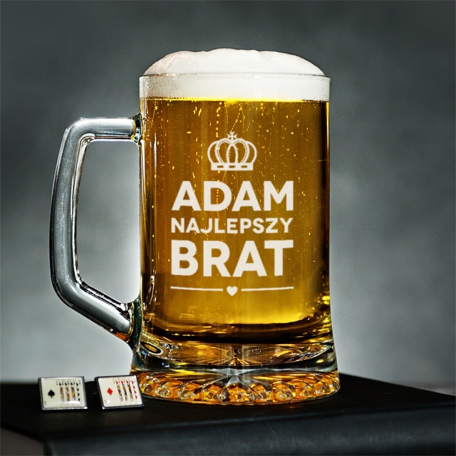 Niezwyczajne połączenie dwóch rzeczy, jakie mężczyźni kochają najbardziej - pysznego piwa i czarującego komplementu - to po prostu nie może się nie udać! Taki prezent dla brata niewątpliwie sprawi, że z radości aż zakręci mu się w głowie. A gdy następnym razem wpadniesz do niego na męską rozmowę, toczoną przy jednym lub dwóch piwach - zwróć uwagę na to, z jaką dumą bierze kolejny łyk z tego kufla! Ale efektowny egzemplarz to tylko kropla w morzu niepowtarzalnych kufli, jakie odkryjesz, gdy tylko odwiedzisz stronę naszego sklepu. Każdy z personalizowanych grawerów stworzy Twój wymarzony prezent dla brata.