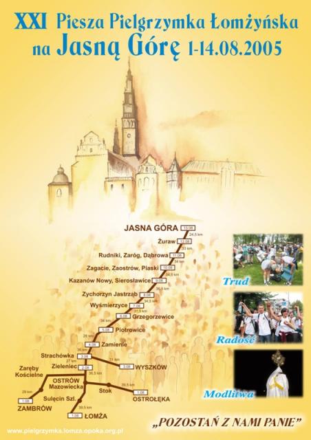 Szczegóły zamieszczone są na naszej stronie pielgrzymkowej: http://www.pielgrzymka.lomza.opoka.org.pl