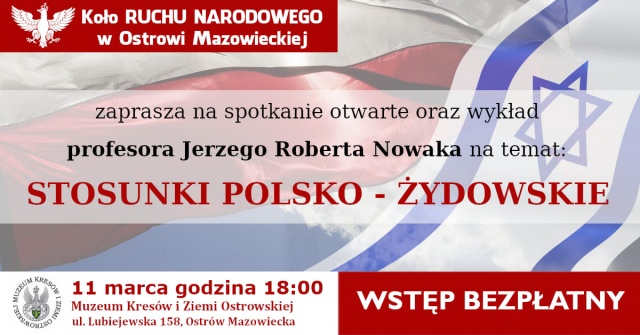 Wykład prof. Jerzego Roberta Nowaka pt. "Stosunki polsko-żydowskie wczoraj, dzisiaj, jutro" odbędzie się 11 marca o godzinie 18:00 w Muzeum Kresów i Ziemi Ostrowskiej. Wstęp bezpłatny.
