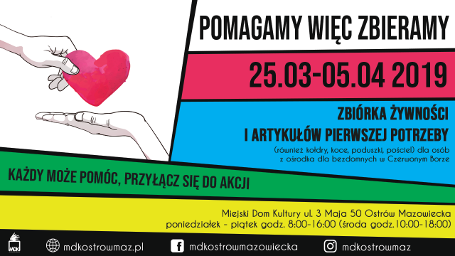 Dary można zostawiać w Miejskim Domu Kultury przy ul. 3 Maja 50 w Ostrowi Mazowieckiej od poniedziałku do piątku w godz. 8:00-16:00 (środa godz. 10:00-18:00).