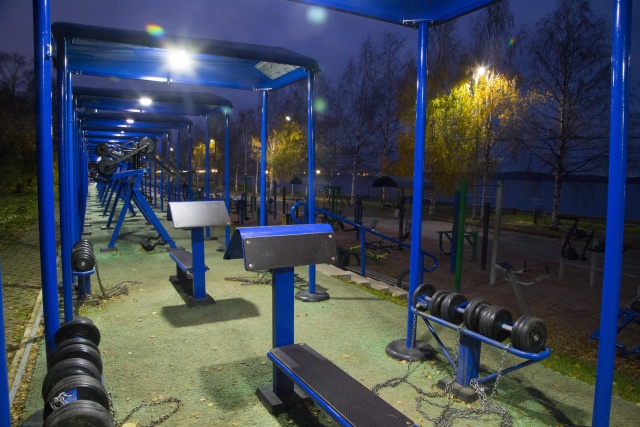 Obciążenia w urządzeniach zewnętrznych zostały tak zaprojektowane i zamocowane, by uniemożliwić ich przenoszenie między poszczególnymi maszynami, zapobiegać aktom wandalizmu (w tym kradzieży elementów) oraz wyeliminować ryzyko upadku ciężaru na nogę. Ciężary poruszają się tutaj na specjalnych stalowych obręczach zamocowanych w poszczególnych urządzeniach mniej więcej na wysokości klatki piersiowej osoby dorosłej, dzięki czemu zmiana obciążenia w trakcie treningu czy dopasowanie obciążenia do własnych potrzeb jest maksymalnie ułatwione.