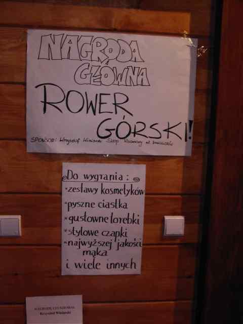 Wszystkich nagród było 500, można było wygrać długopisy, czapeczki, torebki, zapałki, mąkę, ciastka, zestawy kosmetyczne i oczywiście rower. Nie było pustych losów! Rower wygrała Pani, która często przychodzi na spektakle do Kotłowni i powiedziała, że od dziś będzie jeździć do teatru, a nie chodzić. Losowanie zakończyło spotkanie miłośników teatru w Restauracji Ratuszowa o godz. 20.00.