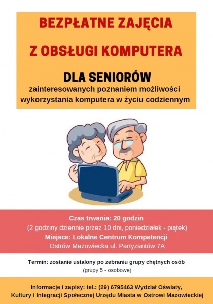 Zapisy: Wydział Oświaty, Kultury i Integracji Społecznej Urzędu Miasta w Ostrowi Mazowieckiej tel. ( 29) 679 54 63.