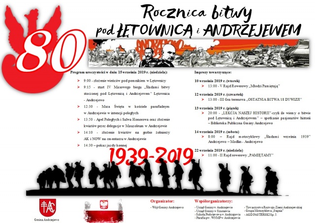 Uroczysty start biegu przy pomniku w Łętownicy o godzinie 9:15, meta na stadionie w Andrzejewie (dystans ok. 6km).