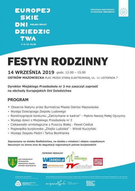 Festyn odbędzie się w ramach obchodów Europejskich Dni Dziedzictwa.