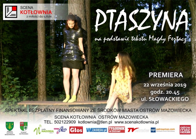 Spektakl "Ptaszyna" powstał w czasie Wakacyjnych Warsztatów Teatralnych i jest autorską realizacją sceniczną dwóch uczestniczek warsztatów: Natashy Waniewskiej oraz Emilii Wyszomirskiej na podstawie tekstu Magdy Fertacz.