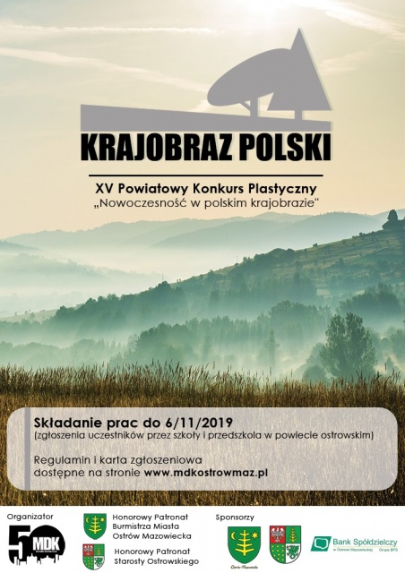 Regulamin oraz karta zgłoszeniowa znajdują się w plikach na dole strony. Konkurs objęty jest Honorowym Patronatem Burmistrza Miasta Ostrów Mazowiecka oraz Starosty Ostrowskiego. Sponsorzy nagród: Urząd Miasta Ostrów Mazowiecka, Starostwo Powiatowe, Bank Spółdzielczy w Ostrowi Mazowieckiej, MDK w Ostrowi Mazowieckiej.