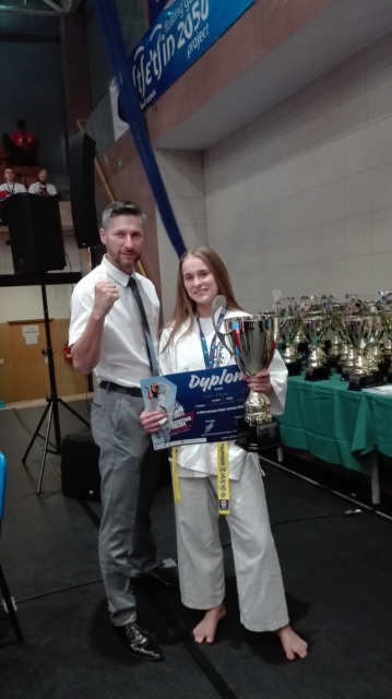 Młoda zawodniczka już w pierwszej walce pokazała, że wie, po co jechała blisko 700 kilometrów do Szczecina. Po dwóch celnych trafieniach Zosia wygrała pojedynek przed regulaminowym czasem. Podobny scenariusz walki był w kolejnym starciu. Również wygrana przed czasem. W walce finałowej musiała jednak uznać wyższość Oliwii Małeckiej z Koneckiego Klubu Karate. Warto dodać również, że Zofia Perzan była najlżejszą zawodniczką w swojej kategorii.