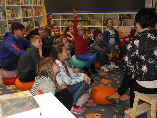 Podczas spotkań nie zabrakło czytania oraz rozmowy o tym, na czym polega praca bibliotekarza.