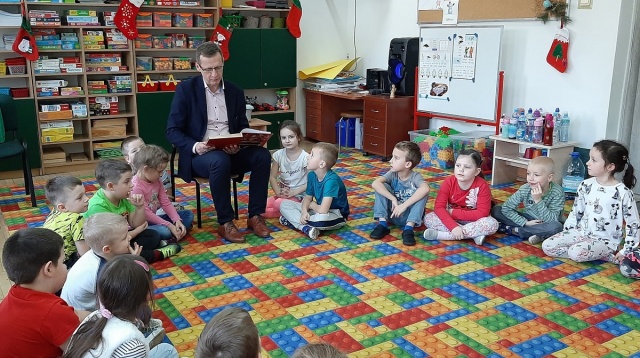 W ramach projektu edukacyjnego "Mały Miś w świecie wielkiej literatury" oraz projektu czytelniczego "Magiczna Moc Bajek" 17 grudnia 2019 r. przedszkolakom w Przedszkolu Samorządowym w Komorowie bajki czytał Wójt Gminy Ostrów Mazowiecka Waldemar Brzostek.