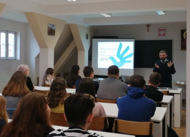 10 grudnia 2019 r. w ramach obchodów Międzynarodowego Dnia Praw Człowieka uczniowie klas 2h, 2d, 3g, 3h LO im. Mikołaja Kopernika w Ostrowi Mazowieckiej uczestniczyli w spotkaniu z przedstawicielem organizacji Open Doors Polska.