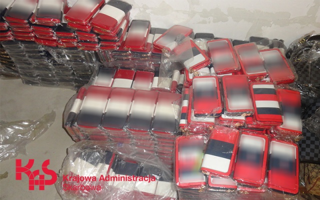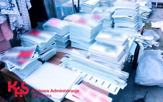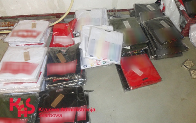 Mundurowi skontrolowali magazyn znajdujący się na prywatnej posesji i dokonali zabezpieczenia blisko 4,6 tys. produktów oznaczonych podrobionymi znakami towarowymi oraz 7 worków wypełnionych naprasowankami, które prawdopodobnie miały zostać naniesione na ubrania.