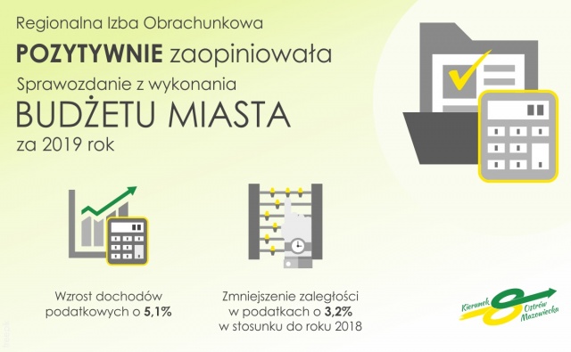 Burmistrz miasta Jerzy Bauer podkreśla, że warto zwrócić uwagę na dwie informacje: wzrost dochodów podatkowych o 5,1% i zmniejszenie zaległości w podatkach (w stosunku do roku 2018 roku) o 3,2%.