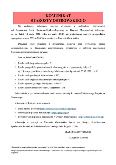 Poniżej prezentujemy pełną treść komunikatu starosty Zbigniewa Chrupka.
