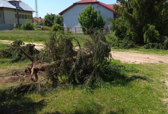 Jak widać na zdjęciu, burza nie oszczędziła nawet choinki w pobliżu naszej OSP.