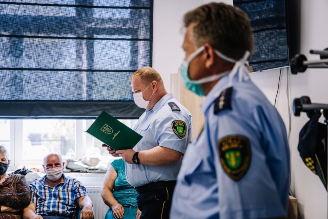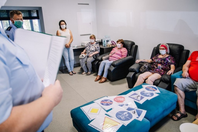Zasady bezpiecznego poruszania się po ścieżkach rowerowych przedstawił seniorom komendant Krzysztof Gołębiewski.