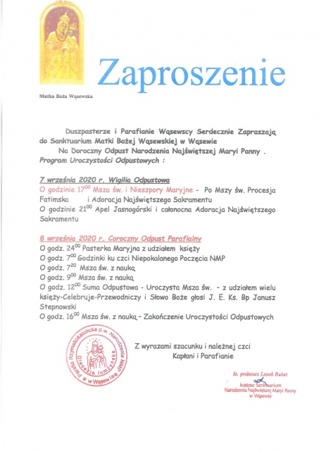 Szczegółowy program uroczystości odpustowych znajduje się poniżej.