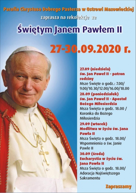 Epidemia sprawiła, że w parafii Chrystusa Dobrego Pasterza w Ostrowi Mazowieckiej, jak i w całym mieście, nie odbyły się rekolekcje wielkopostne, a do adwentowych jeszcze jest trochę czasu. Właśnie z tego względu kapłani chcą zaprosić do duchowego umocnienia na początku nowego roku pracy, formacji i szkoły.