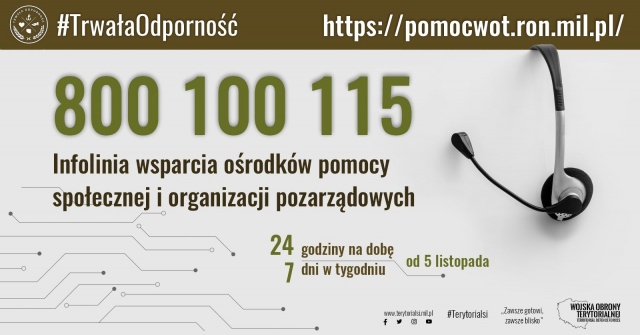 Obecne uruchomienie telefonicznej infolinii jest kolejnym działaniem podejmowanym przez WOT w ramach wsparcia działań związanych z zapobieganiem rozprzestrzenianiu się koronawirusa SARS-CoV-2. Operacja prowadzona przez WOT nosi nazwę Trwała odporność,a jej można zawrzeć w 5 słowach: zapobiegaj, identyfikuj, izoluj, wspieraj, odtwarzaj.