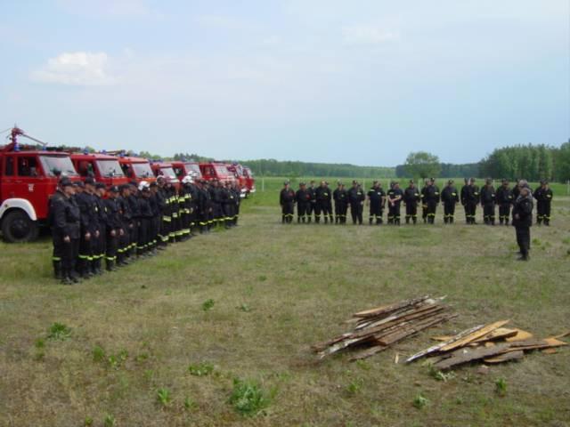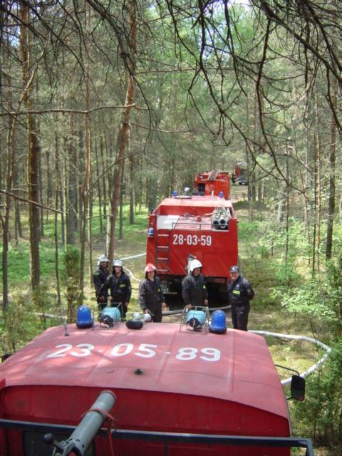 Na szczęście wyżej opisana historia to ćwiczenia gaśnicze, a nie prawdziwy pożar. Lecz w ostatnich dniach właśnie takie sytuacje są w naszym powiecie na porządku dziennym. W samym tylko maju strażacy wyjeżdżali do pożarów lasów już 19 razy. Od marca zdarzeń tych było 25 . A sytuacja w lasach nie jest zadawalająca. Wilgotność ściółki spada poniżej 10% i nie zapowiada się co by popadało. Apel więc do wszystkich to czytających –„ROZSĄDNIE W LESIE” i dzwońcie do straży gdy tylko zauważycie pożar. Każda sekunda zwłoki może okazać się tragiczna w skutkach.