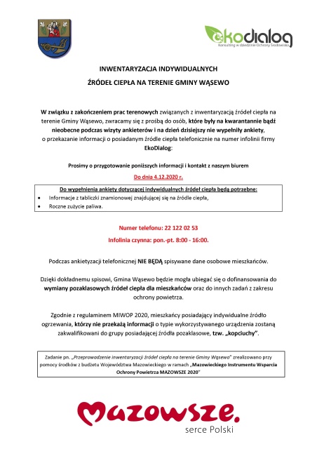 Dodano: 27 listopada 2020 10:15, Autor: Urząd Gminy w Wąsewie, red. Miłosz Magrzyk