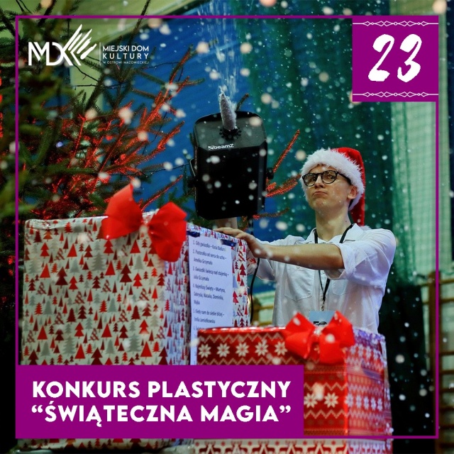 Należy stworzyć pracę, technika jest dowolna, pokazującą magię świąt, umieścić pracę w komentarzu pod postem dotyczącym konkursu, a znajdującym się na stronie facebookowej MDK w Ostrowi Mazowieckiej https://www.facebook.com/mdkostrowmazowiecka/ (należy dodać imię i nazwisko autora, nie ma ograniczeń wiekowych), wzbogacaj wystawę, zbieraj polubienia pod swoim dziełem, odbierz nagrody rzeczowe (za I, II i III miejsce).