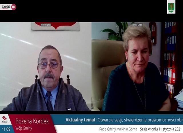 Ponadto rada podjęła następujące uchwały: Uchwałę w sprawie zmiany miejscowego planu zagospodarowania przestrzennego dla miejscowości Zawisty Podleśne, gmina Małkinia Górna, w części dotyczącej działek o numerach ewidencyjnych 618, 619, 620, 621, 622/1 i 623, Uchwałę w sprawie uchwalenia Gminnego programu profilaktyki i rozwiązywania problemów alkoholowych i narkomanii dla gminy Małkinia Górna na 2021 rok, w sprawie przyjęcia Programu współpracy gminy Małkinia Górna z organizacjami pozarządowymi oraz podmiotami, o których mowa w art. 3 ust. 3 Ustawy z dnia 24 kwietnia 2003 r. o działalności pożytku publicznego i o wolontariacie na 2021 rok, Uchwałę w sprawie wyrażenia zgody na zawarcie kolejnych umów dzierżawy nieruchomości gruntowych stanowiących własność gminy Małkinia Górna na czas nieoznaczony w trybie bezprzetargowym, Uchwałę w sprawie określenia metody ustalania opłaty za gospodarowanie odpadami komunalnymi na terenie gminy Małkinia Górna oraz ustalenia stawki tej opłaty, Uchwałę w sprawie rozpatrzenia skarg na działalność wójta gminy Małkinia Górna, w sprawie wyznaczenia aglomeracji Małkinia Górna, dotyczącą udzielenia pomocy finansowej dla powiatu ostrowskiego na wykonanie zadania inwestycyjnego, w sprawie zmiany Wieloletniej prognozy finansowej gminy Małkinia Górna - prognozy na lata 2020-2033, w sprawie zmian w budżecie gminy na 2020 rok, w sprawie uchwalenia planu pracy Rady Gminy na 2021 rok oraz w sprawie zatwierdzenia planów pracy na 2021 rok stałych komisji Rady Gminy.