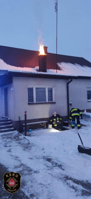 W niedzielę, 17 stycznia, w miejscowości Prostyń 2-krotnie doszło do pożaru sadzy w przewodzie kominowym. Za każdym razem do działań strażaków należało jak najszybsze wygaszenie pieca, aby ogień, który wydostawał się z komina, nie przeniósł się na więźbę dachową budynku mieszkalnego. Po wygaszeniu paleniska sprawdzono, czy nie doszło do uszkodzeń komina i za pomocą kamery termowizyjnej monitorowano temperaturę w środku pomieszczeń mieszkalnych.