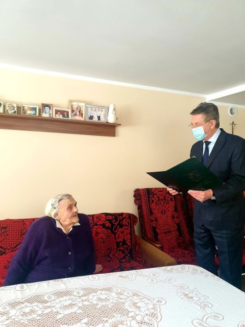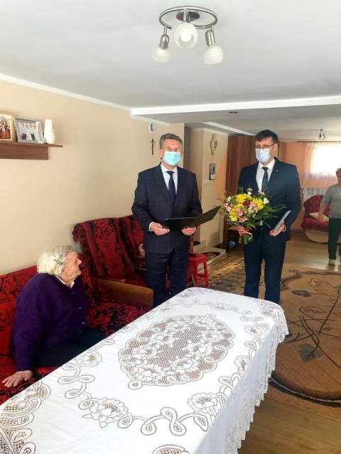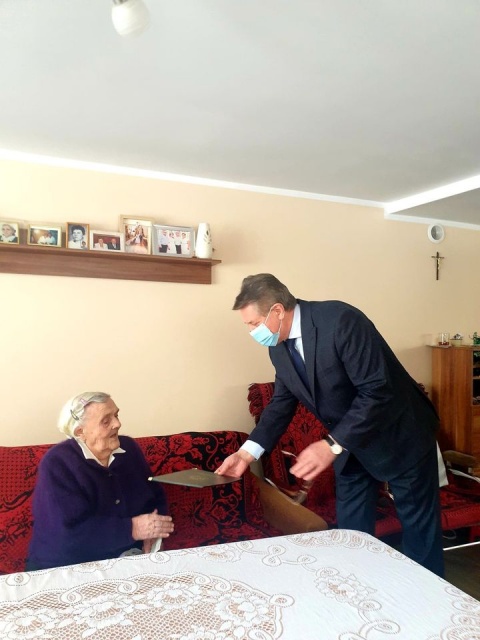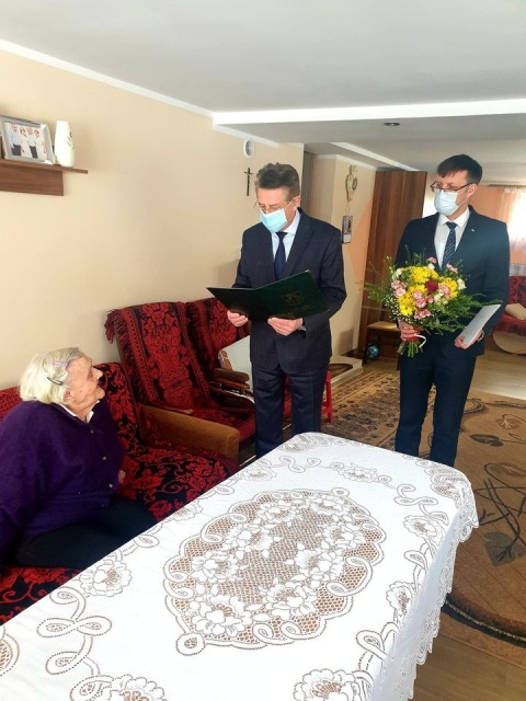 Przedstawiciele gminy złożyli pani Bronisławie gratulacje, życzenia dobrego zdrowia i dużo rodzinnego ciepła na dalsze lata oraz przekazali list gratulacyjny, upominek oraz kwiaty. Do życzeń dołączył się także Marcin Grabowski. Ponadto przekazał on list gratulacyjny od premiera Mateusza Morawieckiego. Uroczystość przebiegała w serdecznej atmosferze.