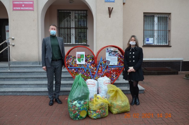 Mieszkańcy powiatu ostrowskiego mają ogromne serca i wielką chęć pomocy potrzebującym. Serduszko na zakrętki, które stoi przed budynkiem Starostwa Powiatowego w Ostrowi Mazowieckiej, zapełnia się w błyskawicznym tempie. Średnio raz na tydzień panowie z Zakładu Gospodarki Komunalnej w Ostrowi Mazowieckiej opróżniają pojemnik, za co pracownicy starostwa serdecznie dziękują.