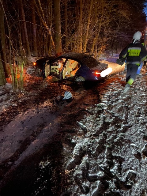 Działania strażaków polegały m.in. na zabezpieczeniu miejsca zdarzenia i odłączeniu akumulatora w rozbitym pojeździe.