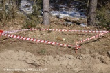 Prace poszukiwawcze rozpoczęto od przeprowadzenia badań georadarowych. W ich wyniku zlokalizowano miejsce, gdzie urządzenie zarejestrowało wyraźną anomalię gruntową, wskazującą na ślad głębokiego wkopu. W miejscu tym dalsze prace wykonywano ręcznie, za pomocą szpadli. Po około czterech godzinach prac natrafiono na pojedynczy pochówek, przy którym znaleziono kilkanaście sztuk amunicji do karabinu - lebela (różnej produkcji), nieliczne elementy oporządzenia wojskowego i resztki skóry, które pochodziły prawdopodobnie z butów. Podczas prac natrafiono także na niewybuch, o odnalezieniu którego niezwłocznie powiadomiono policję.