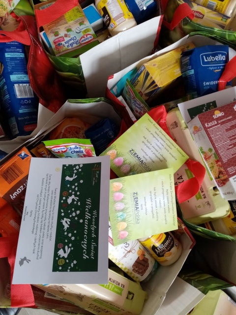 Gminny Ośrodek Pomocy Społecznej w Ostrowi Mazowieckiej 25 najuboższym rodzinom z terenu gminy Ostrów Mazowiecka przekazuje produkty niezbędne do koszyka wielkanocnego.