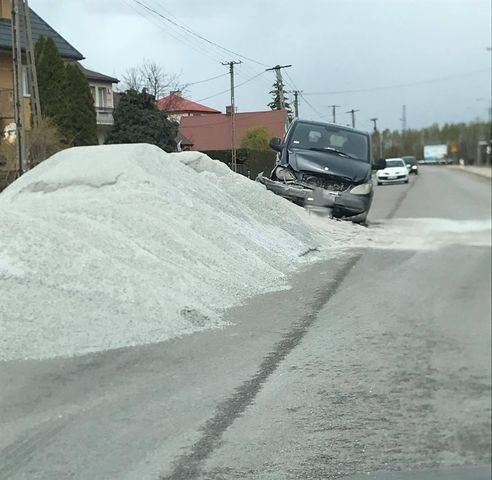 Według ustaleń funkcjonariuszy 3 maja po godz. 10.00 na ul. Lubiejewskiej kierujący (lat 70, trzeźwy), mieszkaniec powiatu ostrowskiego, jadąc mercedesem vito, nie dostosował prędkości do warunków drogowych i najechał na hałdę. Został przewieziony do szpitala. Jak stwierdzono, nie doznał jednak obrażeń. Mężczyznę ukarano mandatem.