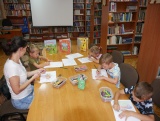 Tematem spotkania, które odbyło się 21 lipca, były "Wróżki i czarodzieje". Dzieci z zaciekawieniem czytały fragmenty książeczek, kolorowały kolorowanki, wycinały ilustracje oraz bawiły się w czarodziejów i wróżki.