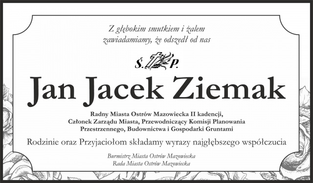 Burmistrz Ostrowi Mazowieckiej i Rada Miasta Ostrów Mazowiecka rodzinie oraz przyjaciołom zmarłego składają wyrazy najgłębszego współczucia.