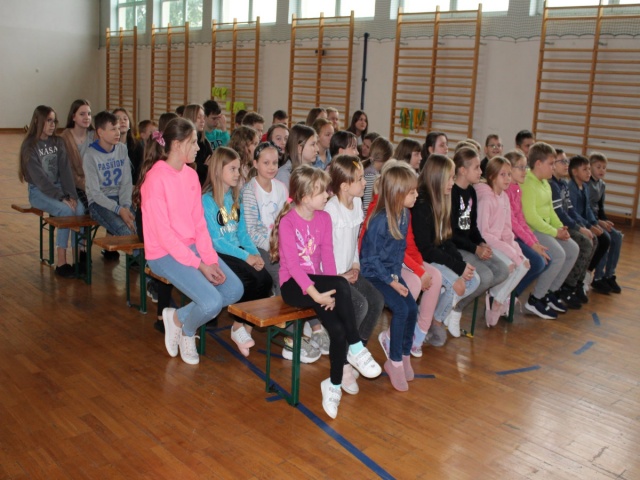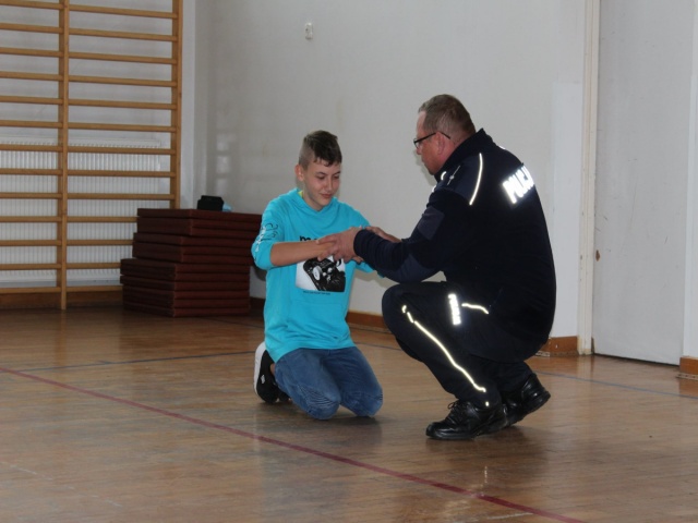 Podczas drugiej części spotkania uczniowie dowiedzieli się, jak należy reagować wobec agresji rówieśników, poznali zasady zachowania obowiązujące w szkole i poza nią. Poruszono także temat cyberprzemocy i skutków, które może nieść ze sobą niewłaściwe korzystanie z Internetu. Prowadzący pogadankę uświadomił uczniom, że mają prawo czuć się bezpiecznie w domu, w szkole i na ulicy.