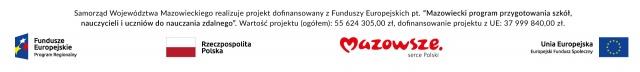A wszystko dzięki projektowi pn. "Mazowiecki program przygotowania szkół, nauczycieli i uczniów do nauczania zdalnego, realizowanemu w ramach X Osi Priorytetowej - Edukacja dla rozwoju regionu w ramach RPO WM 2014-2020 przez samorząd województwa.