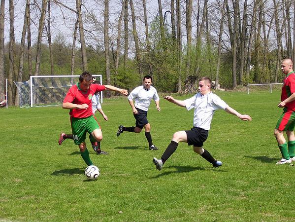 Drużyna z Łochowa prowadzona przez byłego szkoleniowca MKS-u – p. Zbigniewa Suchodolskiego wystąpiła pod wielką presją kibiców z Małkini oraz próbą utrzymania drugiego miejsca w tabeli. Teoretyczna przewaga leżała po stronie gości, zważając na kilkupunktową przewagę nad MKS-em oraz dobrą formą, o której świadczyły dobre wyniki w ostatnich spotkaniach. Zawodnicy obu drużyn już od pierwszych minut spotkania starali się zagrozić bramce rywali oraz zdobyć przewagę na boisku, czego w rezultacie nie udało się osiągnąć żadnej z nich aż do połowy drugiej części spotkania, kiedy MKS Małkinia zdobył bramkę decydującą o końcowym wyniku. Drużyny prezentujące odmienny styl gry, przez ponad godzinę podstawowego czasu nie potrafiły znaleźć skutecznego sposobu na strzelenie bramki. Po wyrównanej potyczce w pierwszej połowie, sposób na strzelenie bramki znalazł D. Stachurski, popisując się strzałem z dystansu zasługującym na uznanie w ekstraklasie. Strzelec bramki, a zarazem bohater tego spotkania na 10 min przed zakończeniem meczu nabawił się poważnej kontuzji, po której nie był już w stanie wspomóc swoich kolegów na boisku.Mecz w rezultacie okazał się być szczęśliwym dla gospodarzy, którzy wygrywając na własnym boisku z drużyną ŁKS Łochów objęli pozycję wicelidera grupy z przewagą 2 punktów nad trzecią pozycją. Postawa MKS-u była także podziękowaniem za doping dla licznie zgromadzonych kibiców.