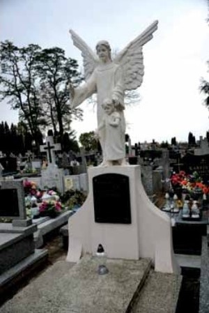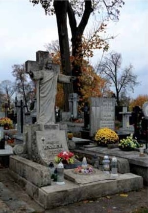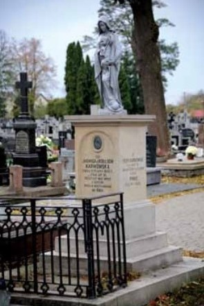 Źródło zdjęcia: Rocznik Ostrowski, jeden z zabytkowych pomników nagrobnych odnowiony z pieniędzy zebranych przez Rycerzy Kolumba podczas kwest na cmentarzu, we Wszystkich Świętych. Na cokole napis: Jadwiga z Kołłdów Karwowska, zmarła w 1879 r. w wieku 27 lat, oraz Piotr Karwowski, zm. w 1882 r. w wieku 38 lat.