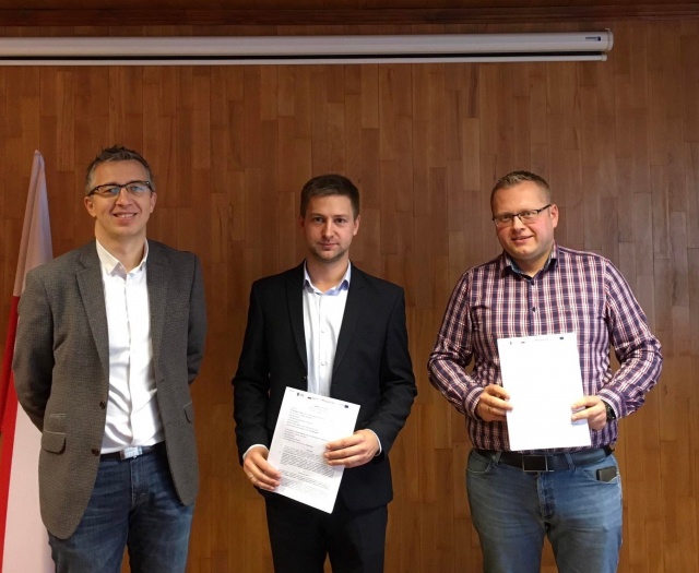 We wtorek, 30 listopada 2021 r., w Urzędzie Gminy w Bogutach-Piankach, odbyło się oficjalne podpisanie umowy z Firmą Bomar 2 - Tomasz Gajewski na zaprojektowanie i wykonanie robót budowlanych wchodzących w zakres zadania pn. Wymiana urządzeń grzewczych w budynkach użyteczności publicznej w gminie Boguty-Pianki. Firmę reprezentował Tomasz Gajewski (właściciel), z kolei ze strony gminy Boguty-Pianki swoje podpisy pod dokumentem złożyli wójt Jędrzej Michał Drewnowski oraz skarbnik Mirosława Zbrzeźniak.
