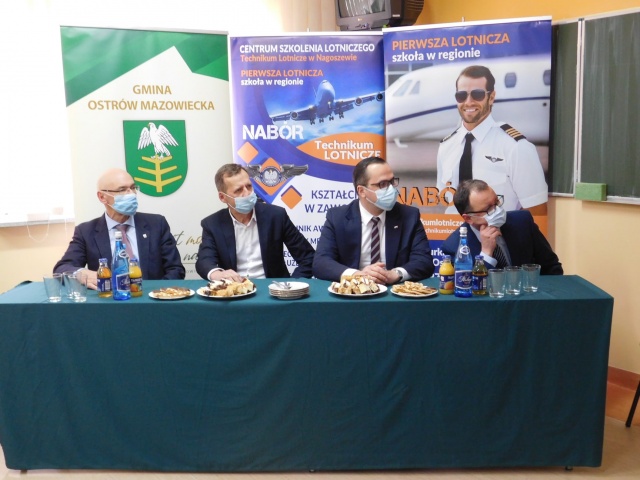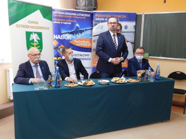 W spotkaniu uczestniczyli również starosta ostrowski: Zbigniew Chrupek, kadra pedagogiczna Technikum Lotniczego, na czele z dyrektorem Agatą Bartkiewicz i wicedyrektorem (pilotem) Jackiem Jarmułą, oraz uczniowie, którzy przedstawili prezentację o szkole.