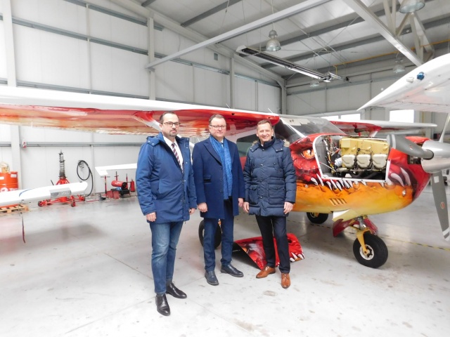 W ramach spotkania odwiedzono także lotnisko Grądy. To całoroczny kompleks lotniczy, posiadający 800-metrowy pas asfaltowy oraz nowoczesny hangar, w którym uczniowie odbywają zajęcia praktyczne.